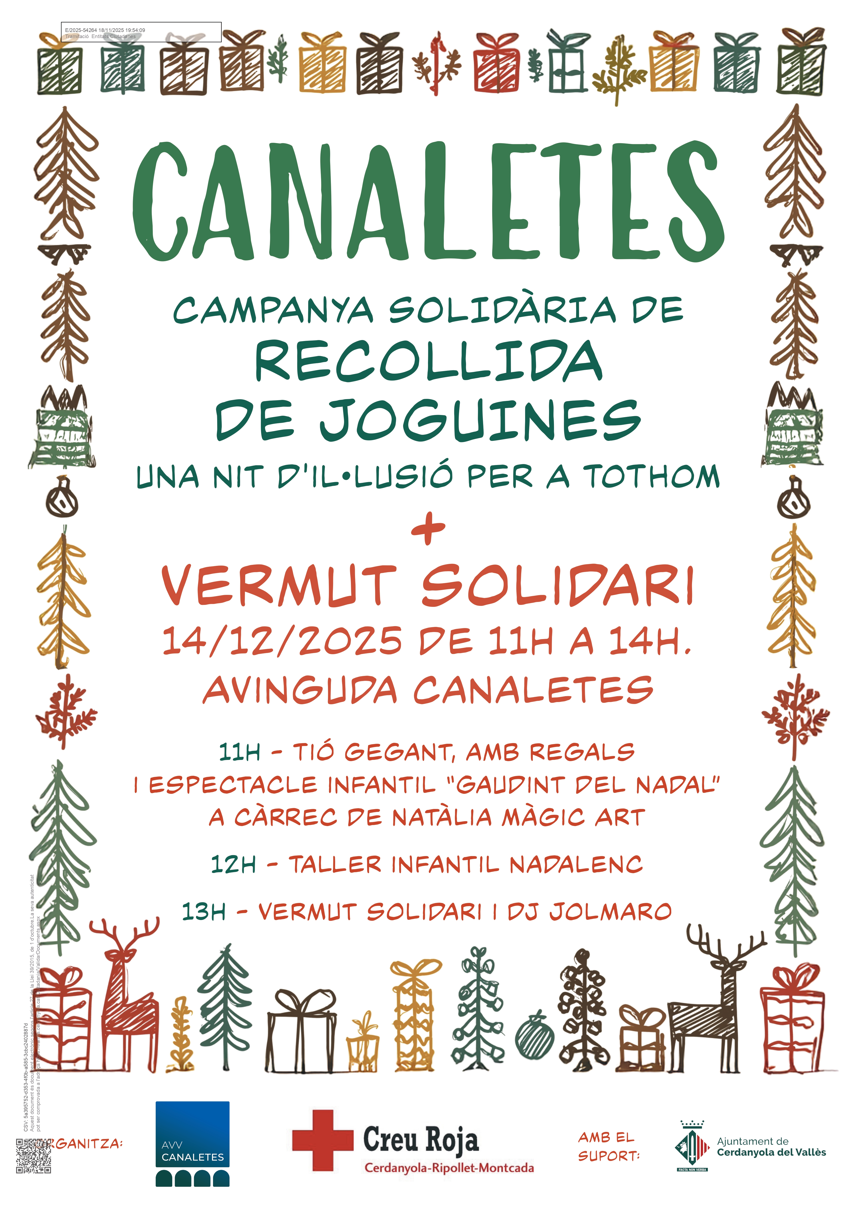 Un any més, l'A.VV. Canaletes col·labora amb la campanya 'Una nit d'il·lusió per a tothom'. Organitzen activitats per als infants i muntaran una parada de recollida de joguines i llibres nous al barri, concretament al passeig de vianants de l'Av. Canaletes.