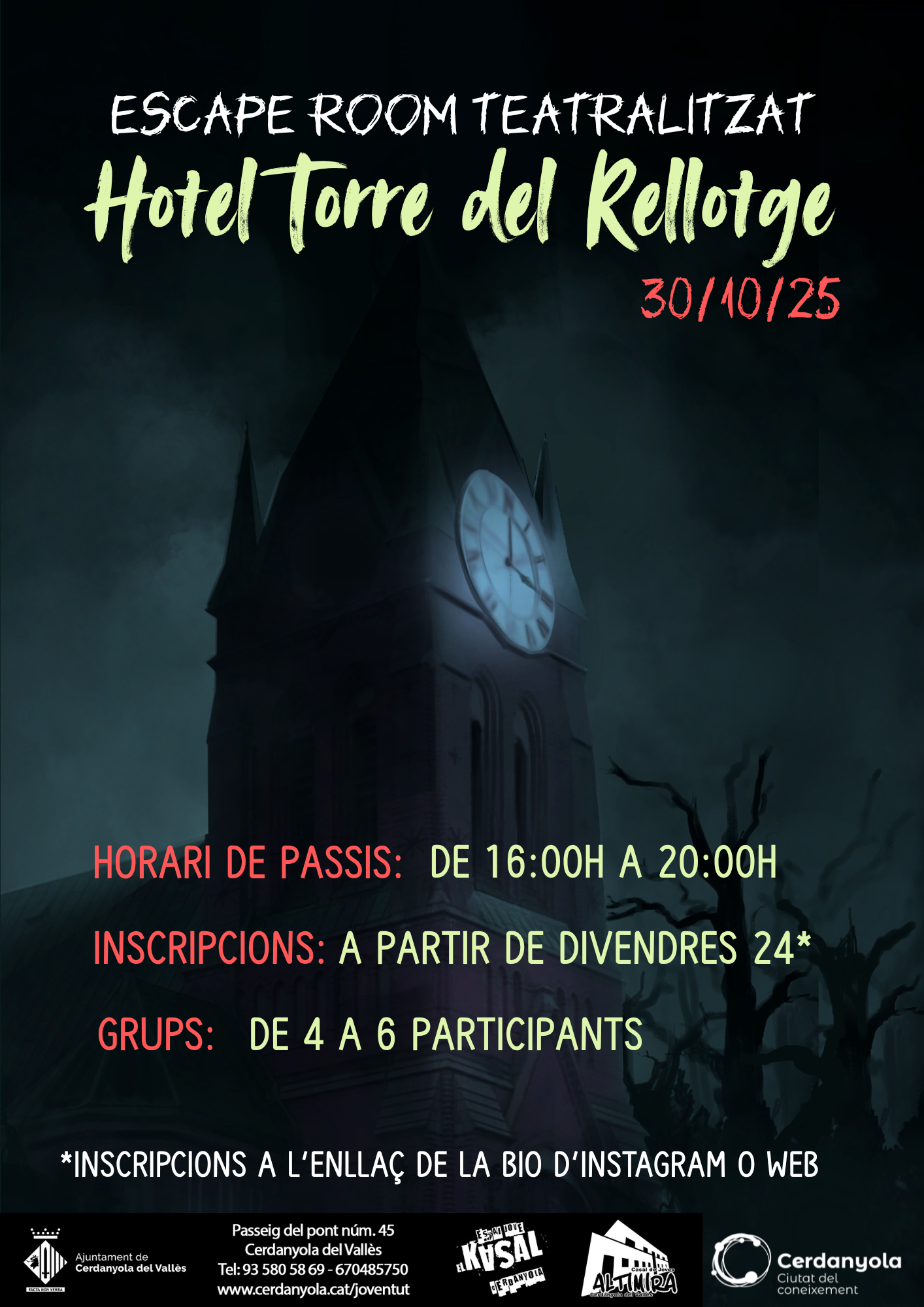 T'esperem dijous 30 d'octubre el Casal de Joves es converteix en un escape room teatralitzat.